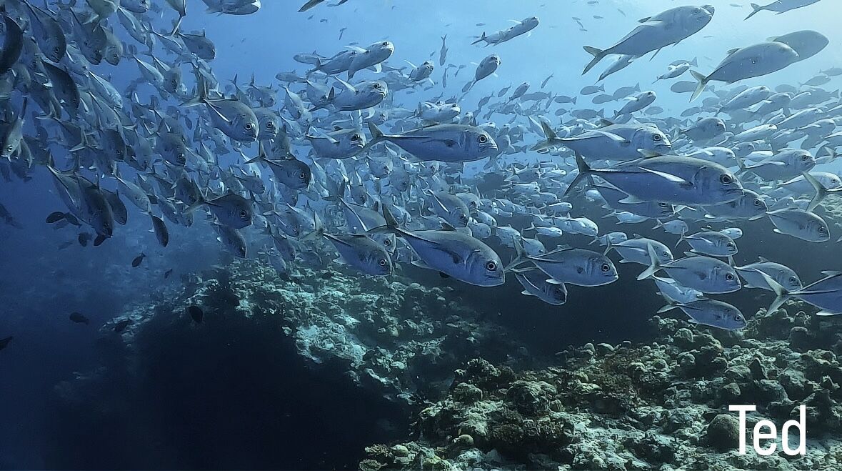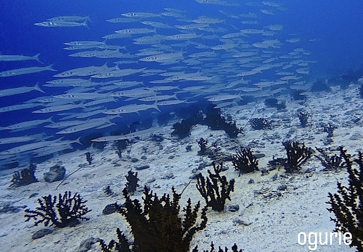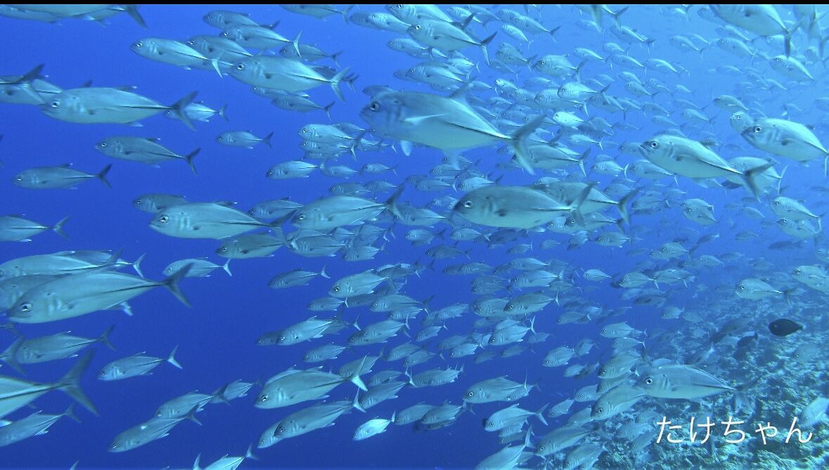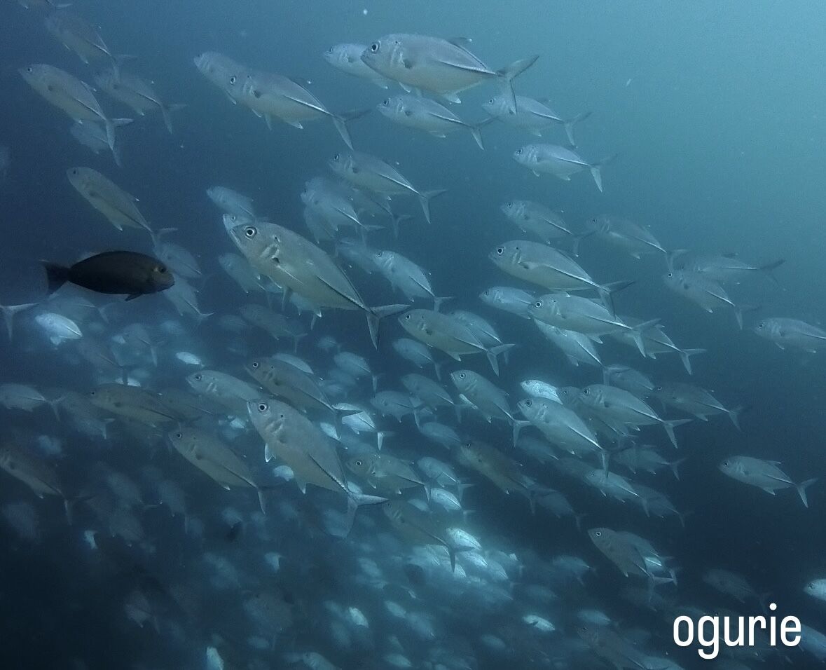その後は至る所にギンガメアジの群れが!