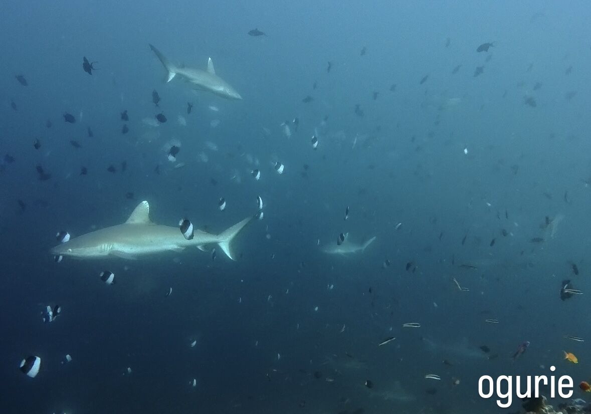 ダイビング後半にかけてサメがわらわらと集まって来てくれました!