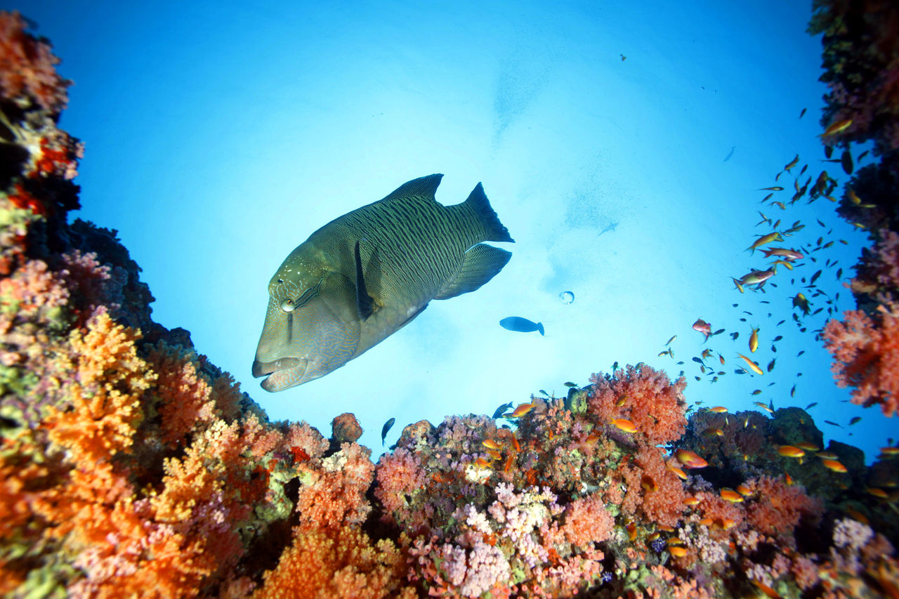 モルディブアネモネフィッシュがヨスジたちをじっと見てます。