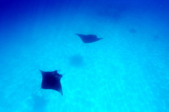 初日からパウダーブルーの玉に囲まれると、あっちにマンタ!こっちにマンタ!と大忙し。