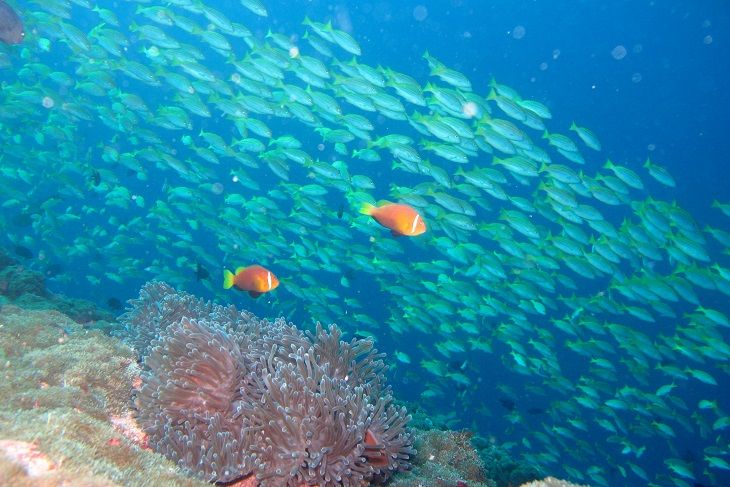 このポイントは沈船だけではなく、トップリーフ上のクマノミ、ハナダイも魅力の一つ。