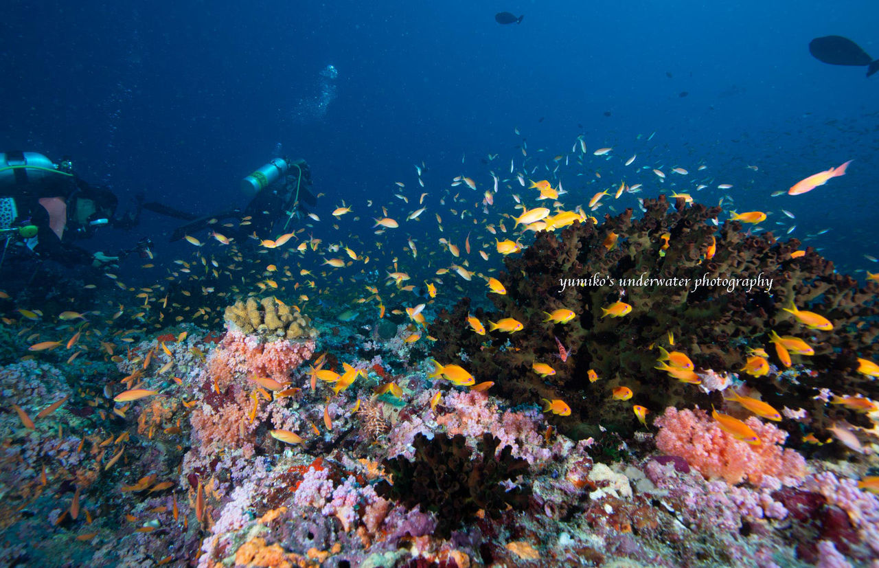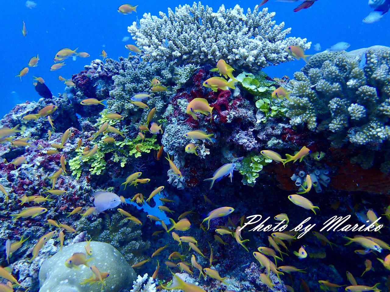 エッジにはムレハタタテダイがいたり、根の上にはハナダイもたくさんです。