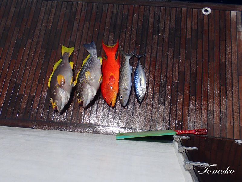 クルーのみんなが釣ってくれた魚でお刺身を食べたり!