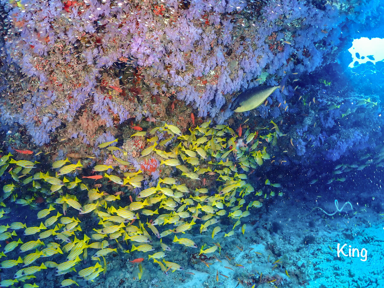 ハニファル近くのポイントでは早朝の暗がりでソフトコーラルやイボヤギが満開に〜