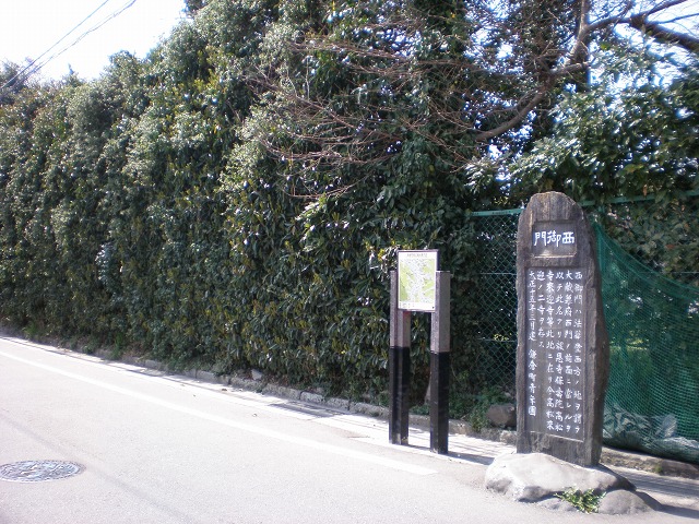 西御門は、法華堂(ほっけどう)の西の方の土地を言います。大蔵幕府の西門の前面に当たるため、この名前が付いています。