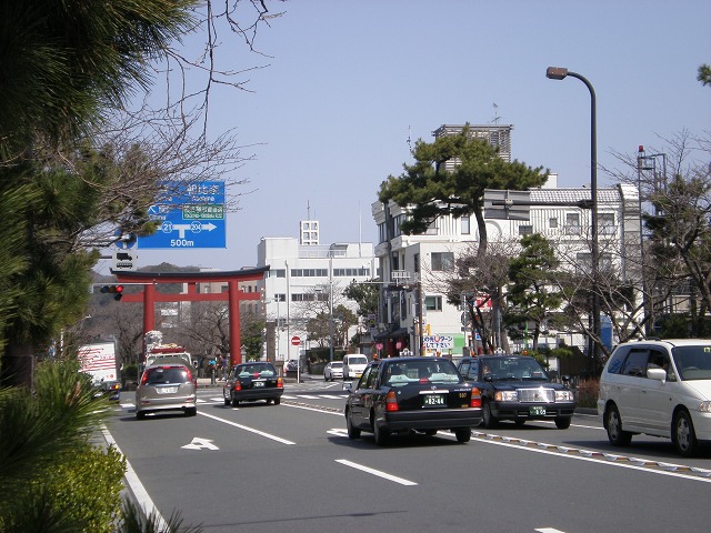 鶴岡八幡宮・三の鳥居の前を走る横大路(よこおおじ)を右折、