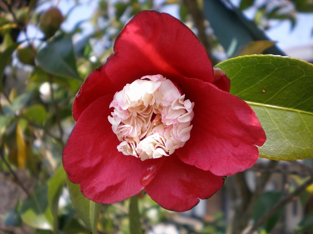 と赤い赤いツバキ。どちらも正確な名前はわかりません…。