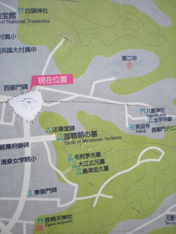 来た道を戻り、途中にあった標識の角を左折、大蔵幕府旧跡、そして源頼朝の墓方面を目指します