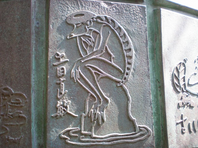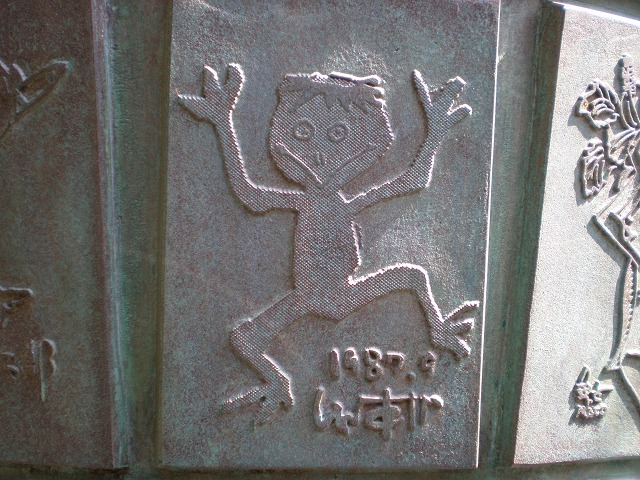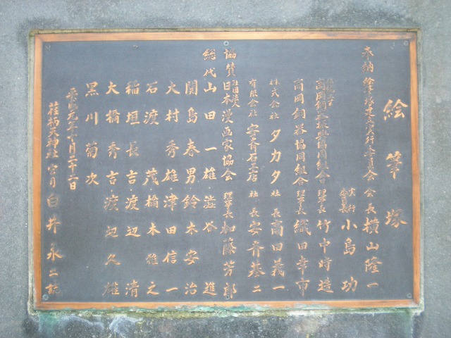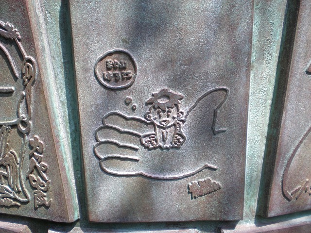 ▼絵筆塚には建立実行委員会会長・横山隆一ら漫画家154人が描いたカッパの漫画が…。