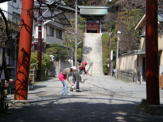 今日は暑いぐらいの気候なので、茶店の人が打ち水をしていました。