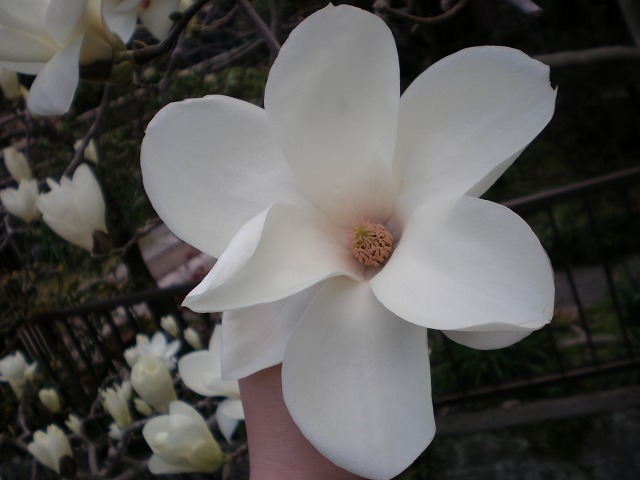 ▼門前の民家のハクモクレンの美しさよ