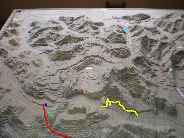 そして、圓光寺下の陣屋坂を下っていくと相模陣(紫のライン)がありました。
