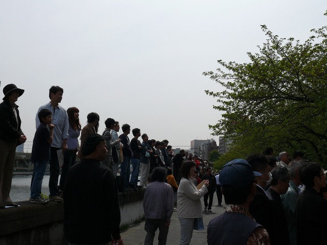 あふれ出した観衆は隅田川の堤防まで。