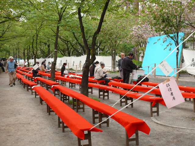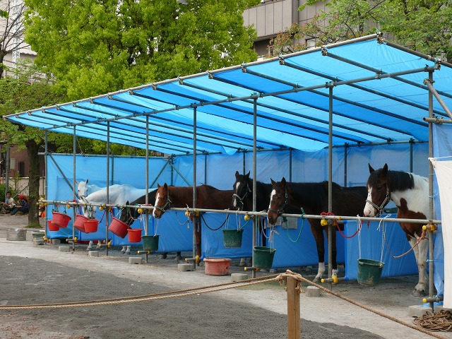 ▼こちらは午後1時から流鏑馬(やぶさめ)が行われる特設馬場の埒(らち)外に