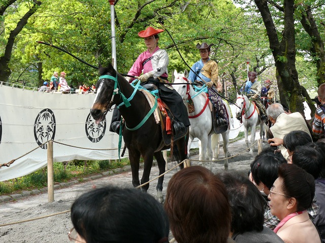 。素晴らしい技術に感心するばかり。馬場に的は3つありますが〔三的・みつまと〕、なかなかすべての的を射止めるのは大変なことのようでした。