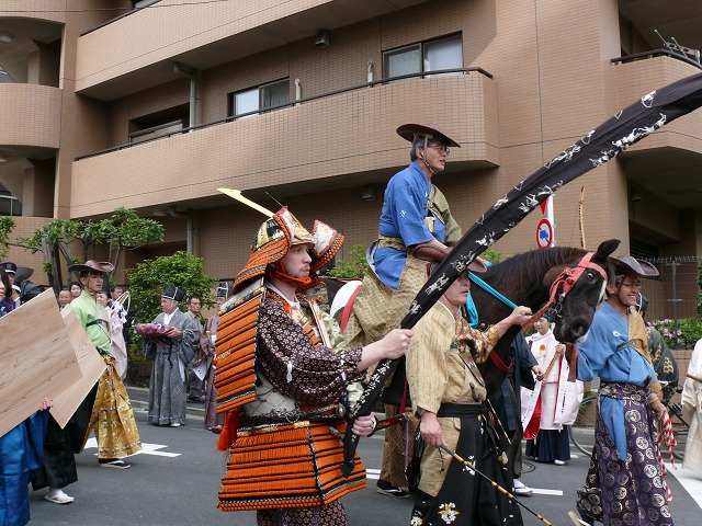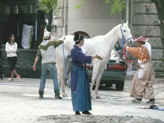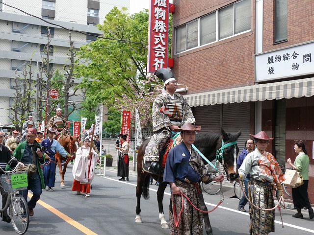 ▼12:35。自宅から伝法院に向かう流鏑馬の一行が見えました。