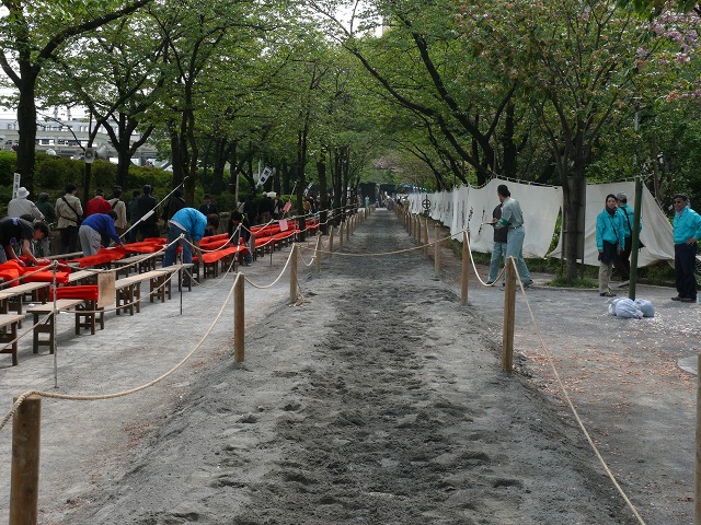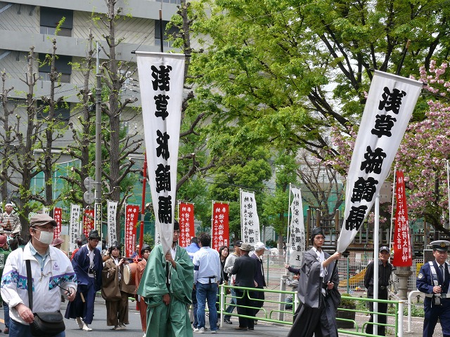 草鹿同様、伝法院を起点に浅草の町の中を少し行列してから隅田公園に入ります。