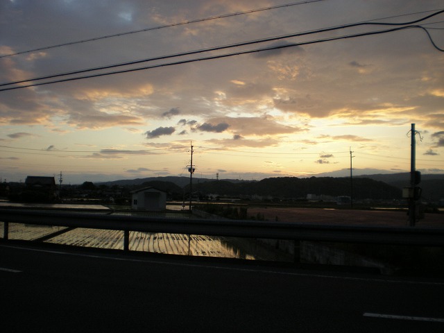 こちらは旦の実家近くの石清水八幡宮の夜景。とても空が広くて夕焼け雲が悠々と流れていく。