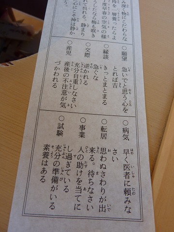 ▼おみくじを引きました。こちらのご神託はいつも的を得ている気がします。