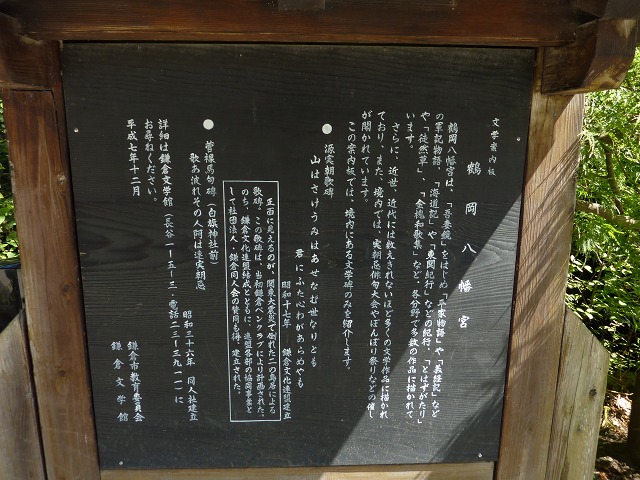 (写真右)実朝の歌碑が刻まれた旧・二の鳥居(関東大震災で倒壊)の解説も。