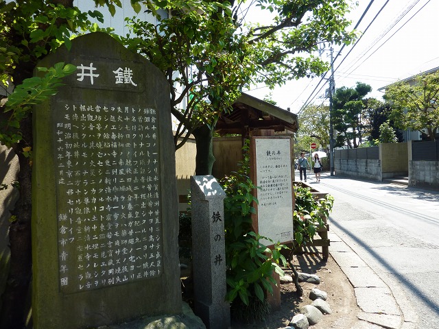 横大路(鶴岡八幡宮三の鳥居前の道)と交わる角に「鉄ノ井(くろがねのい)」。