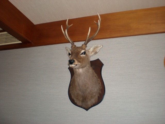のお食事処にも、シカの剥製やシカの肉メニューが…。どんなお味かしら