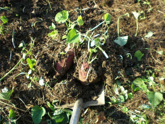 ▼蔓を刈ったらいよいよ、サツマイモを掘り出します。