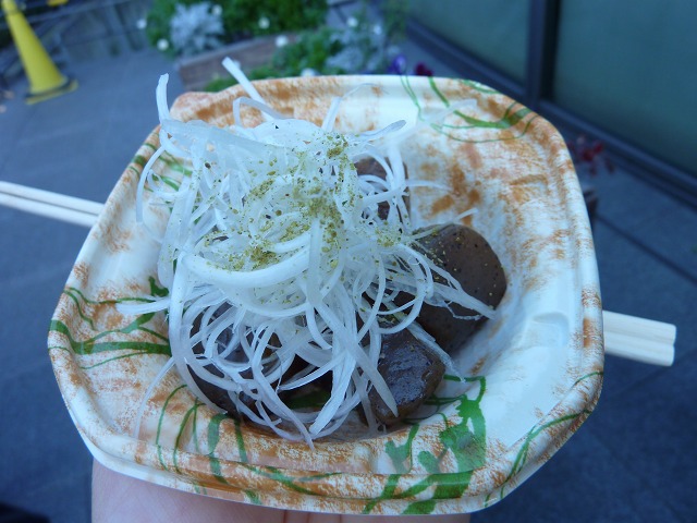 「こんにゃくの石川」は、ちぎったこんにゃくを胡麻油で炒めて醤油をさし、