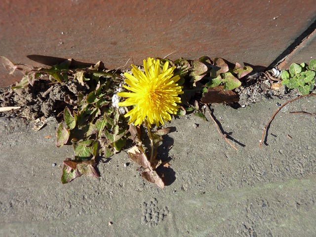 ▼ド根性タンポポ。ねこ団子ひとつ。