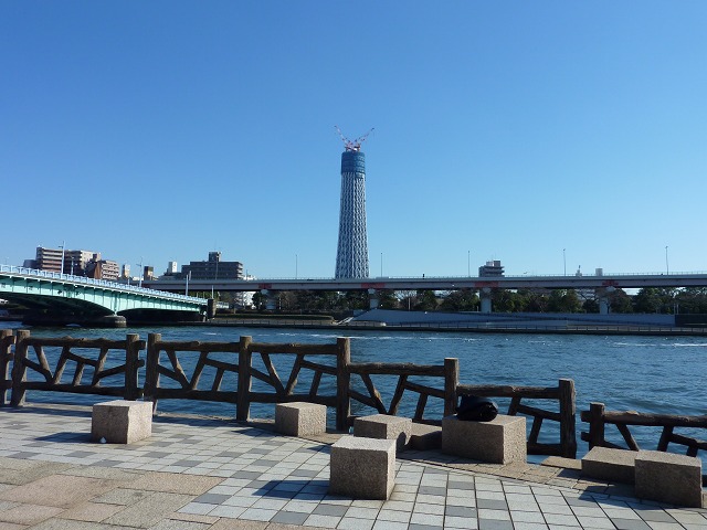 ▼11時すぎ。隅田公園の護岸からの眺め。