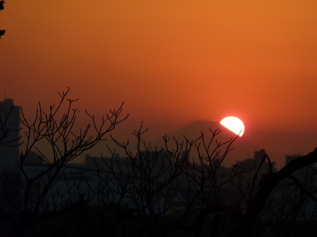 昨日(29日)と今日の日没時に「ダイヤモンド富士」が見れるとのこと。