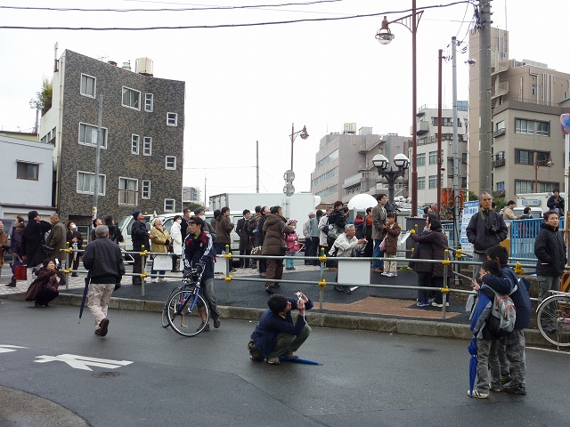 最寄の見学コーナー「東武橋」の上と袂は、この人だかりです