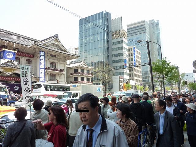 晴海通りを渡って歌舞伎座の向かいにもすごい人。