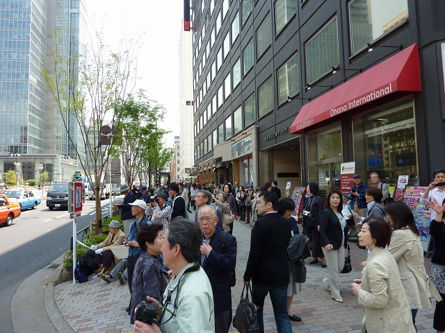 歌舞伎座の方から、この辺りに並ぶ人は前の100人がごっそりいなくならない限り、