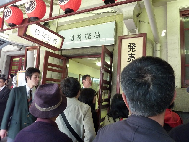 閉場式の当日券を求めて、すでにたくさんの人がチケット売り場前で、