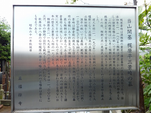 万福寺には梶原景時以外の史跡もいろいろとありましたので、以下にアップします。