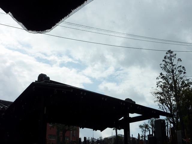 20分ほど降り続いた豪雨は止み、青空のカケラが…。散策開始