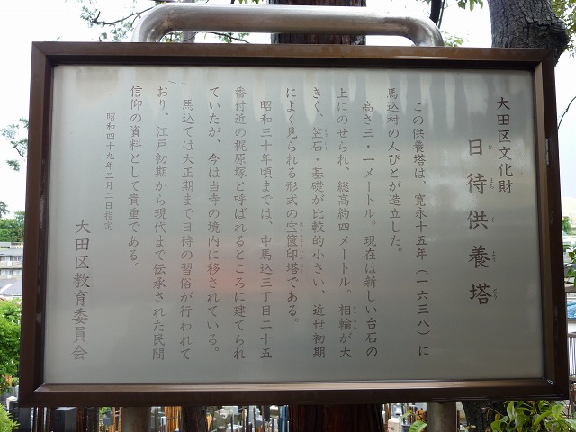 元応二年(1320年)に火災に遭い、景時の墓所のある馬込に移され再建。