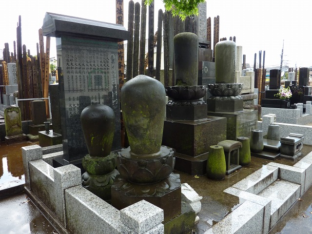 (写真左)梶原景時の墓近くにある「歴代住職の墓」