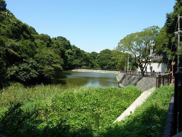 鎌倉山の山間にあり、「夫婦池」と呼ばれる2つの池(上池・下池)と桜が有名です。