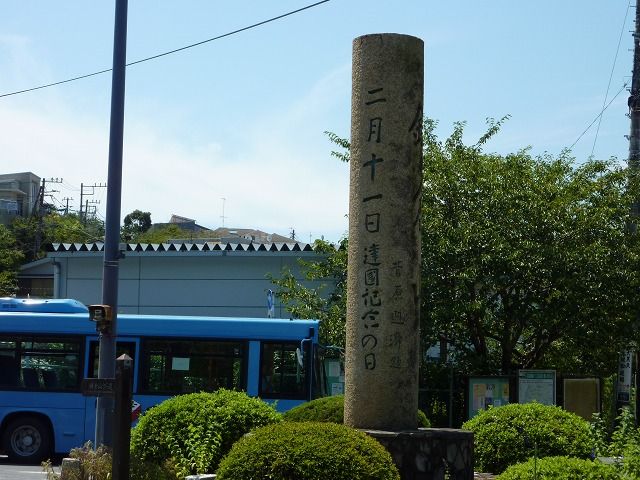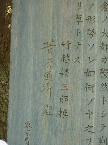 題字は菅原通済、竹越與三郎の文。1935(昭和10)年建立。高さ4m。