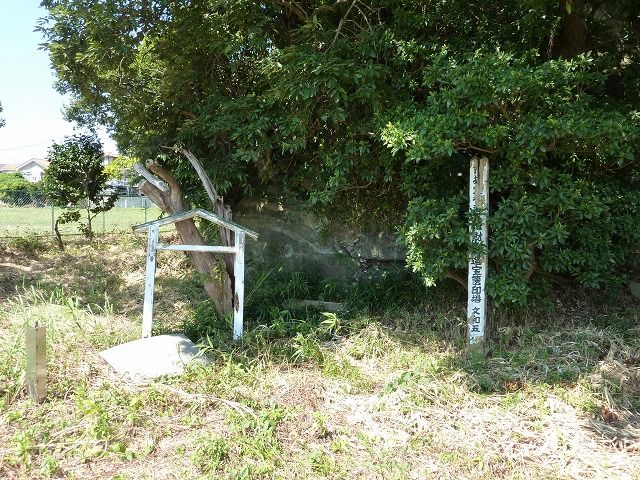 激戦が繰り広げられた洲崎(すさき)古戦場の碑の近くに建つ宝篋印塔(ほうきょういんとう)。