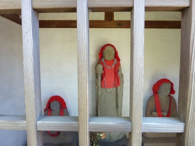 (写真左)地蔵堂内部。中央に地蔵菩薩、左右に弘法大師の石像。