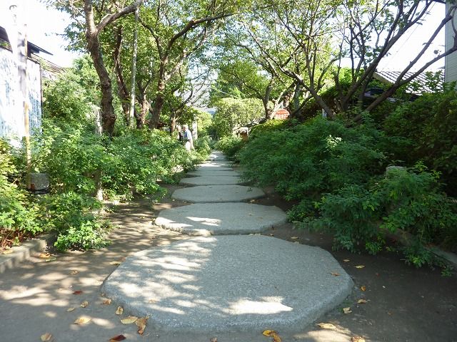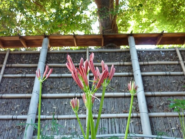 鶴岡八幡宮脇、彼岸花が美しい小道もまだこれから。