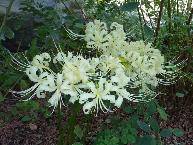 こちらは白萩の下でひっそりと咲いていた白い彼岸花です