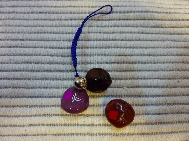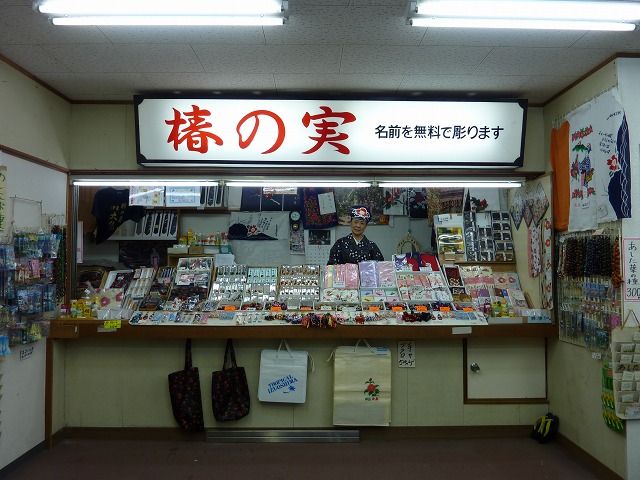 (写真左)椿の実細工のキーホルダーや根付のお店。全部で8ヶも買っちゃいました。