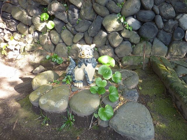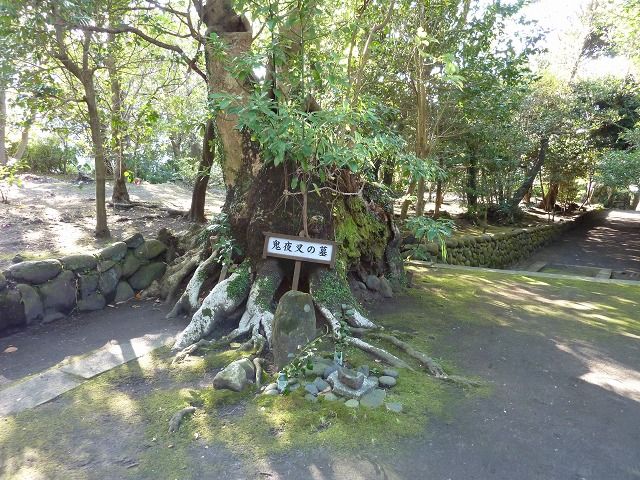(写真左)お社のすぐ近くには為朝の家臣・鬼夜叉の墓があります。こちらもいい雰囲気。