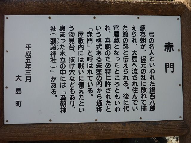 いったん「ホテル赤門」まで戻って、今度は建物左手の為朝史跡を見学します。