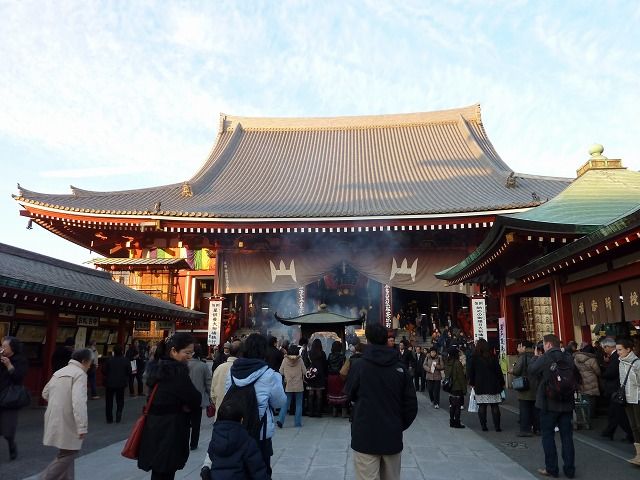 午後の浅草寺の様子。平日とあって普段と変わらぬ人出です。
