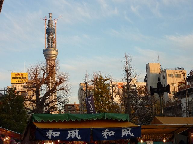 (写真左)スカイツリーからも羽子板市の様子が見えるでしょうか。